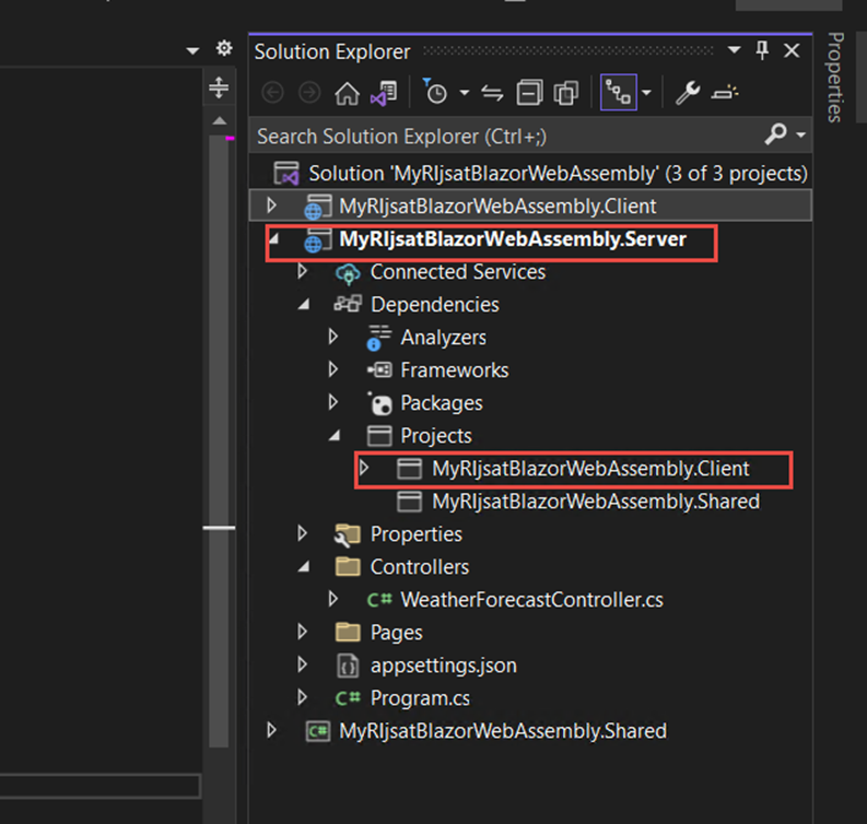 Then again, if we check the server project, which is more like a normal web API. However, the reference of Client project is added.