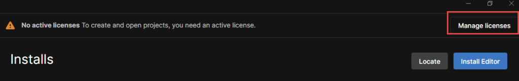 Once you are verified for your account it will ask you to install Unity Editor as shown below. If you are installing for the first time, then click on Install Unity editor. If you have already installed the editor, then you can locate the existing one.