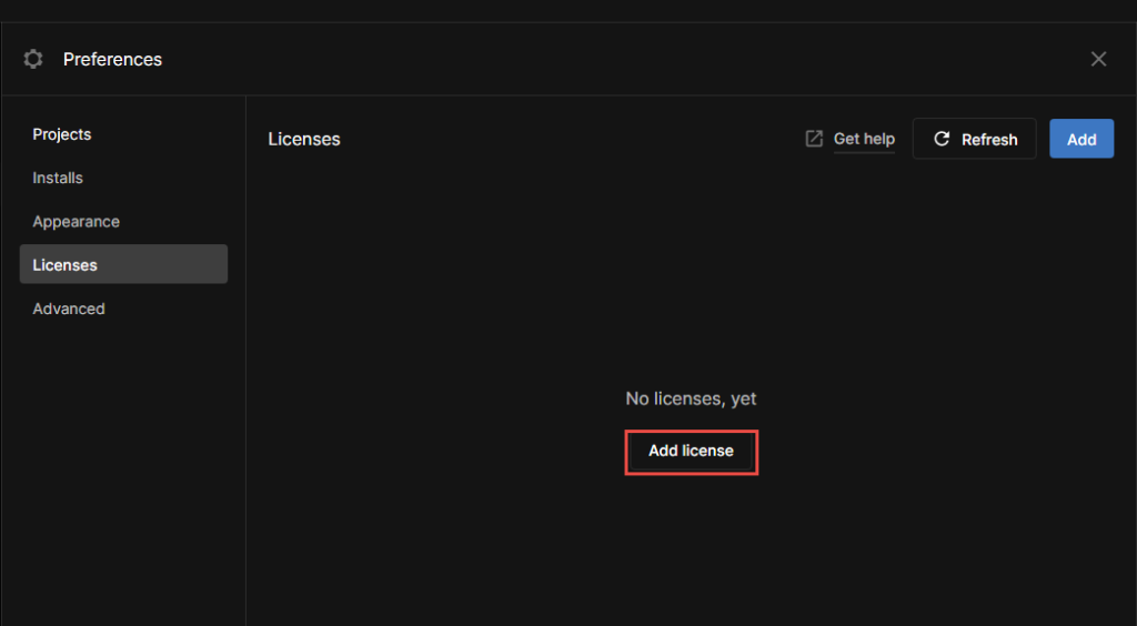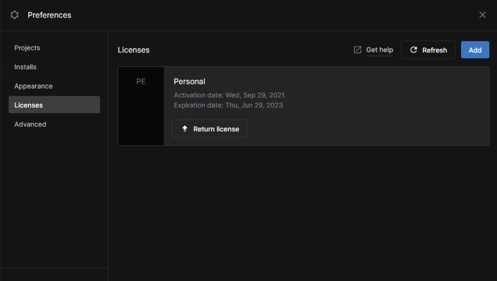 You can select a license option based on the license that you have such as you can Active with serial number, active with license request, or Get a free personal license.