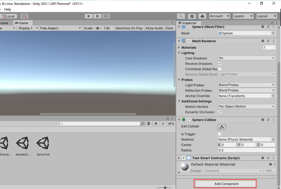 Step 4- Then go to the Inspector window, and click on the “Add Component” button.