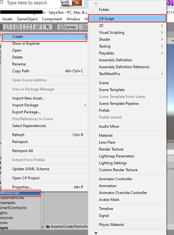 Step 2- Create a new C# script or locate the existing script that you want to bind to the scene.