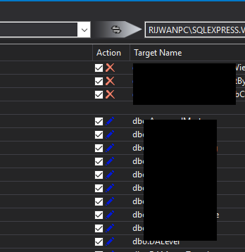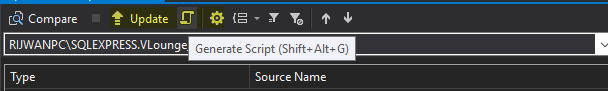 Update or Create update Scripts After a successful comparison, we will get some more options. Besides a compare icon, there are few more options to update or generate update scripts as shown below: