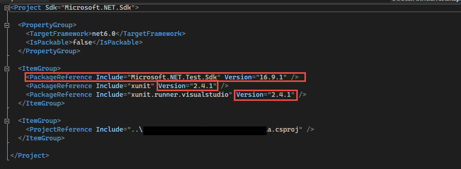 <PackageReference Include="Microsoft.NET.Test.Sdk" Version="16.9.1" />Test Project’s Csproj file in details