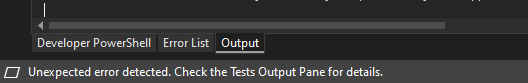 Once, the upgrade is completed I was testing the solution where I got an error: “unexpected error detected. Check the Tests output Pane for details.”