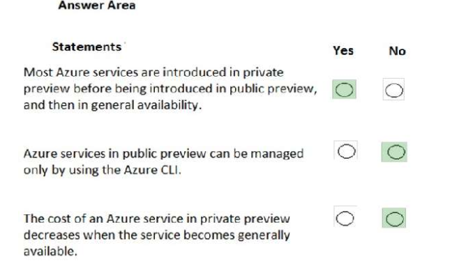 B: Services in private preview are available only to selected people who has signed up to the private preview
