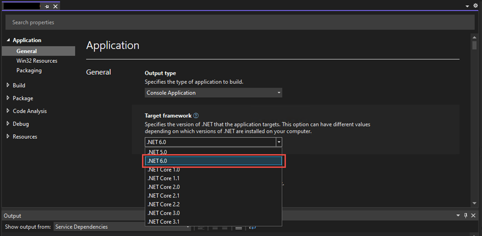 Then select the target framework to .NET 6.0 as depicted below and save it.
