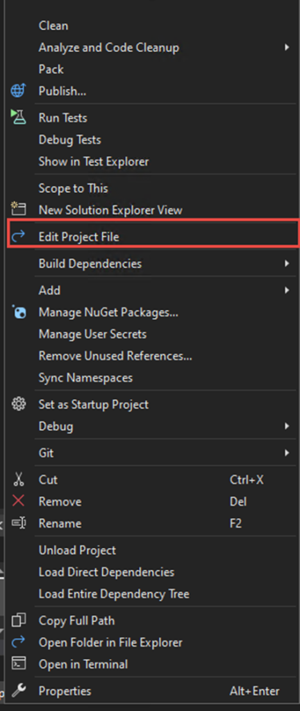 Update Package references if there are any. Go to Project.csproj file and do this.